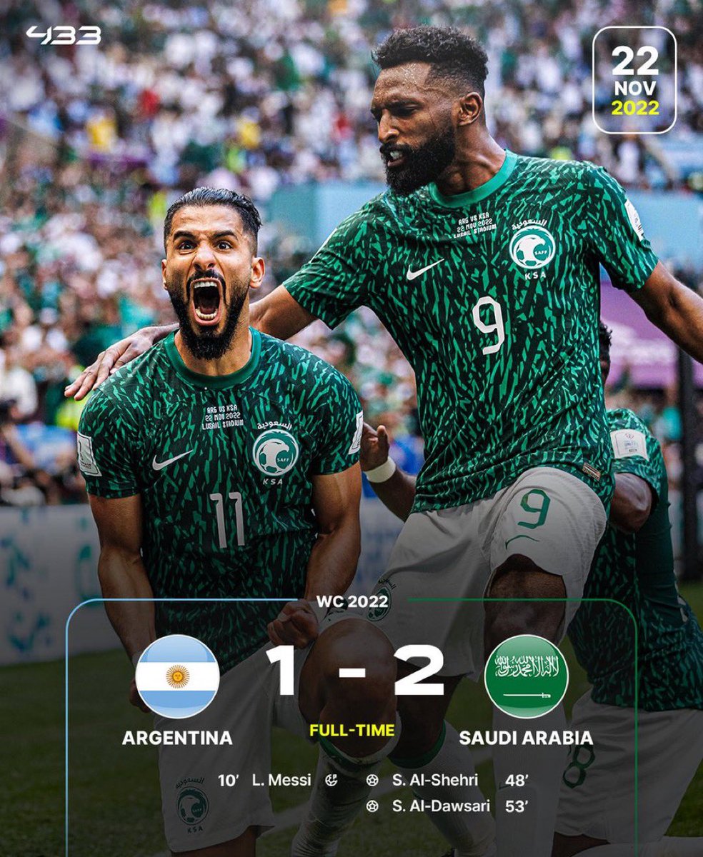 22 نوڤمبر هو يوم ذكرى فوز السعودية التاريخي على الارجنتين🇸🇦❤️