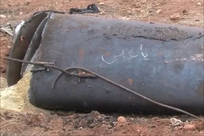 الصورة دي لبرميل من براميل بشار، الاختراع السوفييتي اللي طورته حكومة سوريا ومحدش غيره في الدنيا كان هيقدر يطوره ويستخدمه، لسبب بسيط جدًا