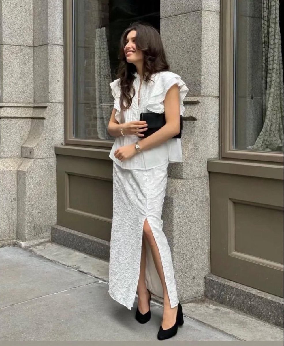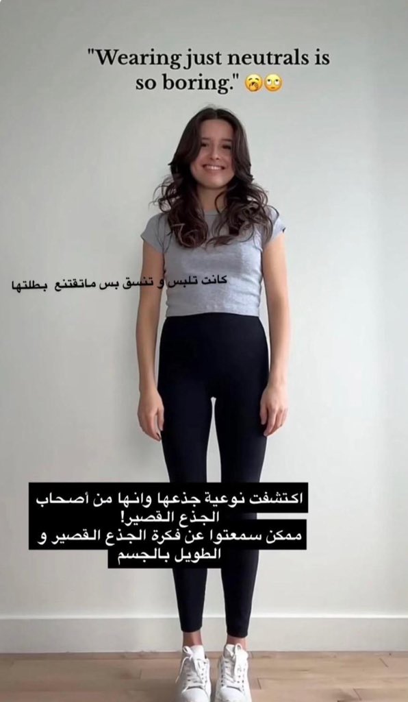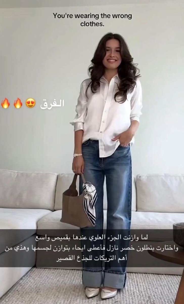 شوفوا الفرق😍🔥 لما وازنت الجزء العلوي عندها بقميص واسع واختارت بنطلون خصر نازل فأعطى إيحاء بتوازن لجسمها وهذي من أهم التريكات للجذع القصير x.com