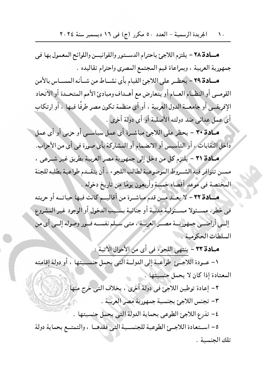 -نقطة حلوة تانية إنه المادة 28 بتلزم اللاجئ احترام الدستور والقوانين وتقاليد وعادات الشعب المصري