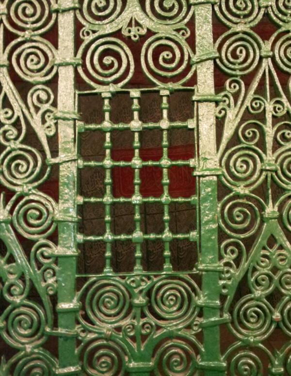 قال الامام المطري رحمه الله : وحولها الدرابزين أي المقصورة الشريفة الدائرة على الحجرة الشريفة وقد كتبت فيها بالرخام هذا متهجد النبي ﷺ.