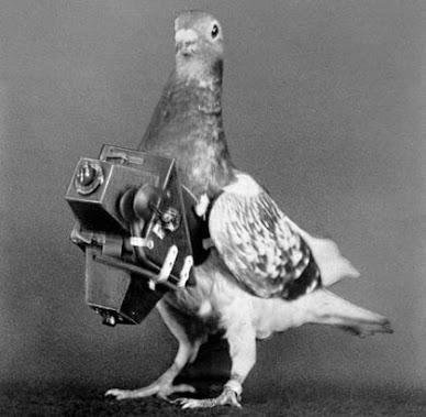 في الحرب العالمية الأولى والثانية كان الحمام الزاجل يستخدم لنقل الرسائل وكان يُوضع عليه كاميرات تعمل بمؤقت تشغيل للتجسس على العدو ..