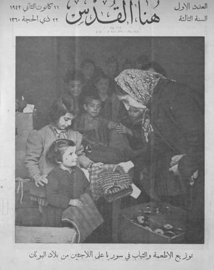 توزيع الأطعمة والثياب في سوريا على اللاجئين من اليونان أثناء الحرب العالمية الثانية عام 1942م ..
