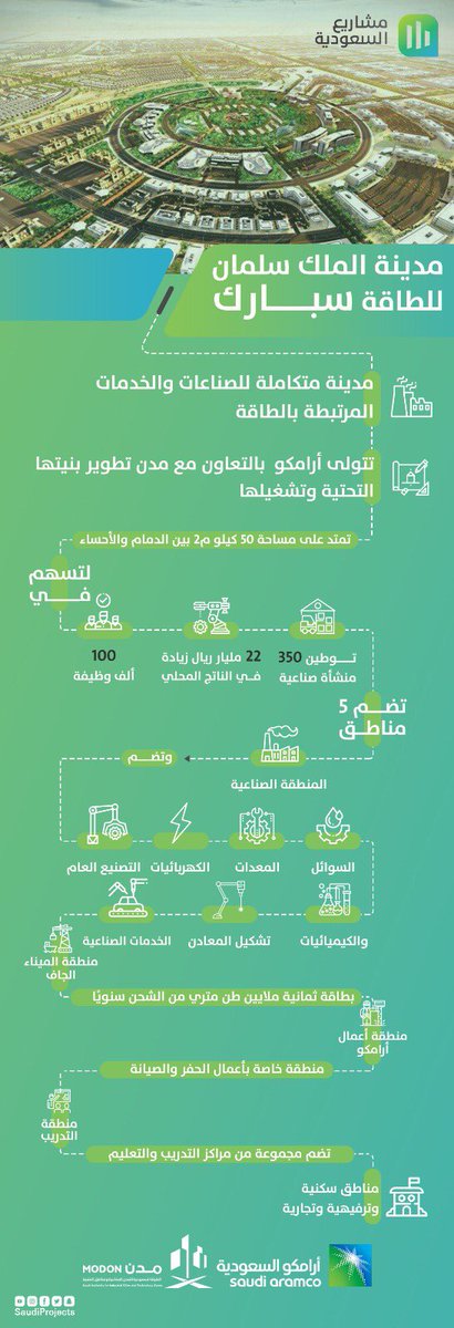 سمو #ولي_العهد يدشن مدينة الملك سلمان للطاقة #سبارك، وجهة للاستثمارات المساندة لصناعة النفط والبتروكيماويات والصناعات التحويلية والخدمات اللوجستية بإشراف وتطوير #أرامكو بالتعاون مع #مدن