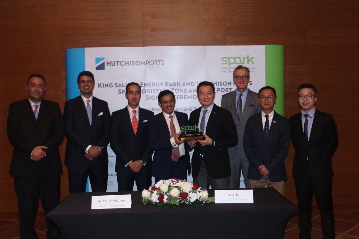 توقيع مذكرة تفاهم مع شركة "هاتشيسون بورتس" للمشاركة في إدارة وتشغيل منطقة لوجستية وميناء جاف بمستوى عالمي في #مدينة_الملك_سلمان_للطاقة #سبارك