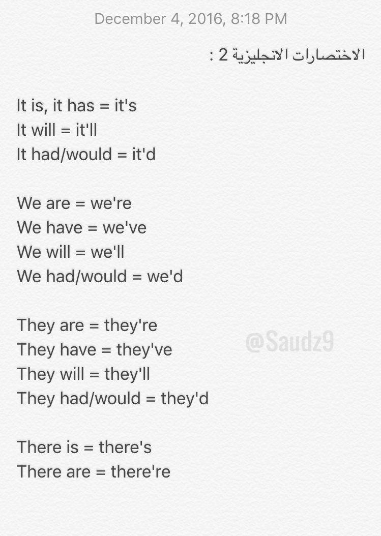 تحت هذي التغريدة بنزل لكم بين فترة وفترة حاجات خفيفة باللغة الانجليزية، سواء درس او معلومة او نصيحة .. اتمنى الفائدة للجميع .