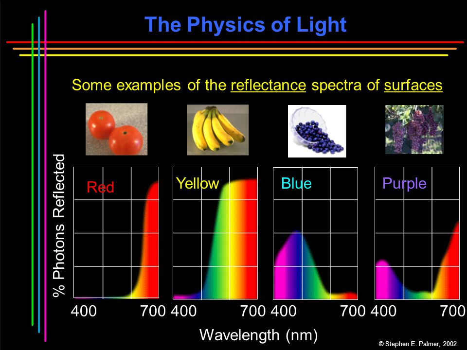 يصل الضوء المنعكس من الاشياء الى العين فتستقبلها ثم تتفاعل معها فيحفزالضوء أعصاب معينة في العين لترسل اشارات الى الدماغ فيترجمها