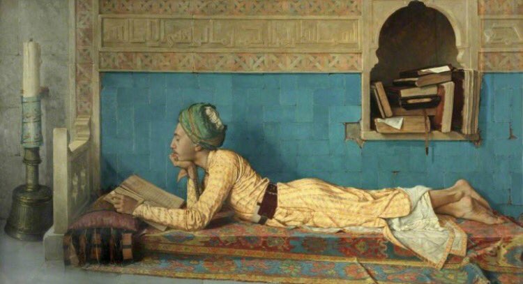 وبقيت حائرًا لا أدري ماذا حدث لشهرزاد. كبرت بعدها قليلا، ووقعتُ على نسخةٍ قديمة من أربعة أجزاء تحوي الليالي كاملة، تزيّنها رسوم المستشرقين =
