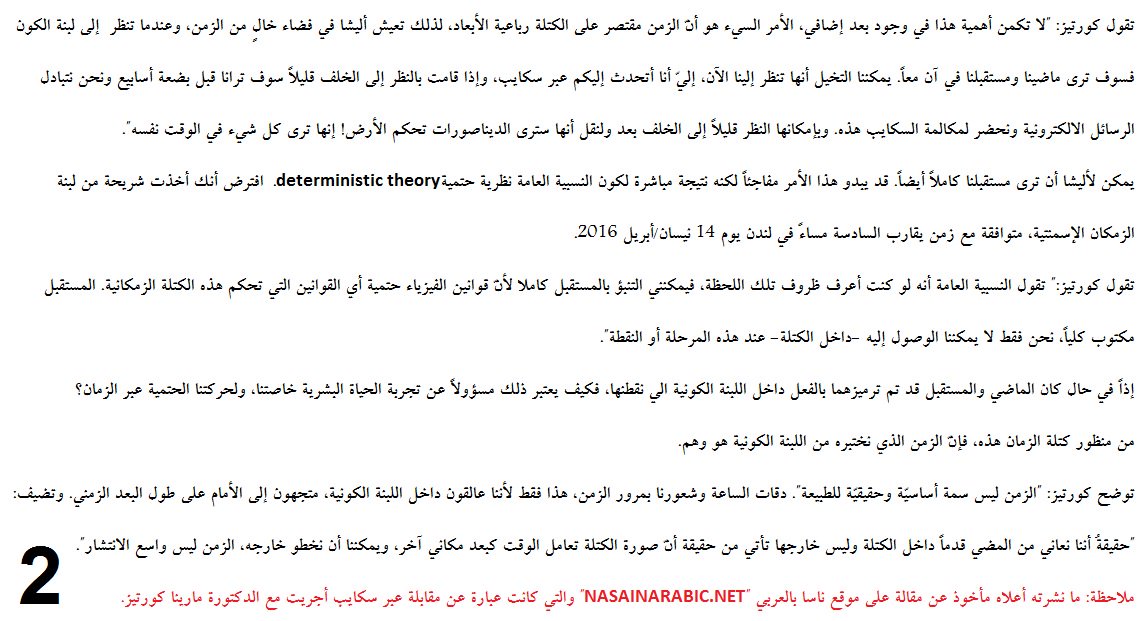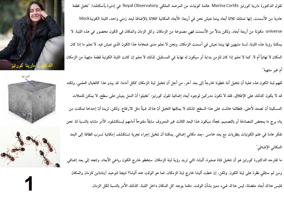 وإذا كان لا زمن خارج لبنة الكون: الزمكان، كما في مثال البنت أليشا