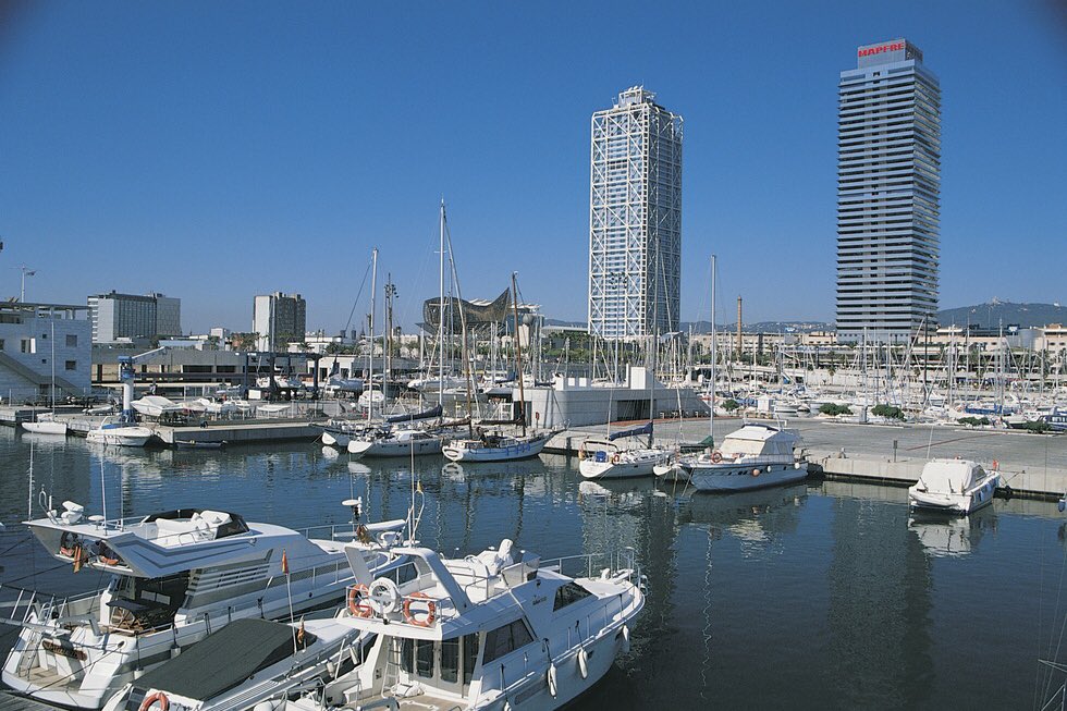 الميناء الأولمبي في #برشلونة حيث المطاعم والمقاهي، مناسب في فترة الصباح والعصر، ولا يصلح بعد غروب الشمس