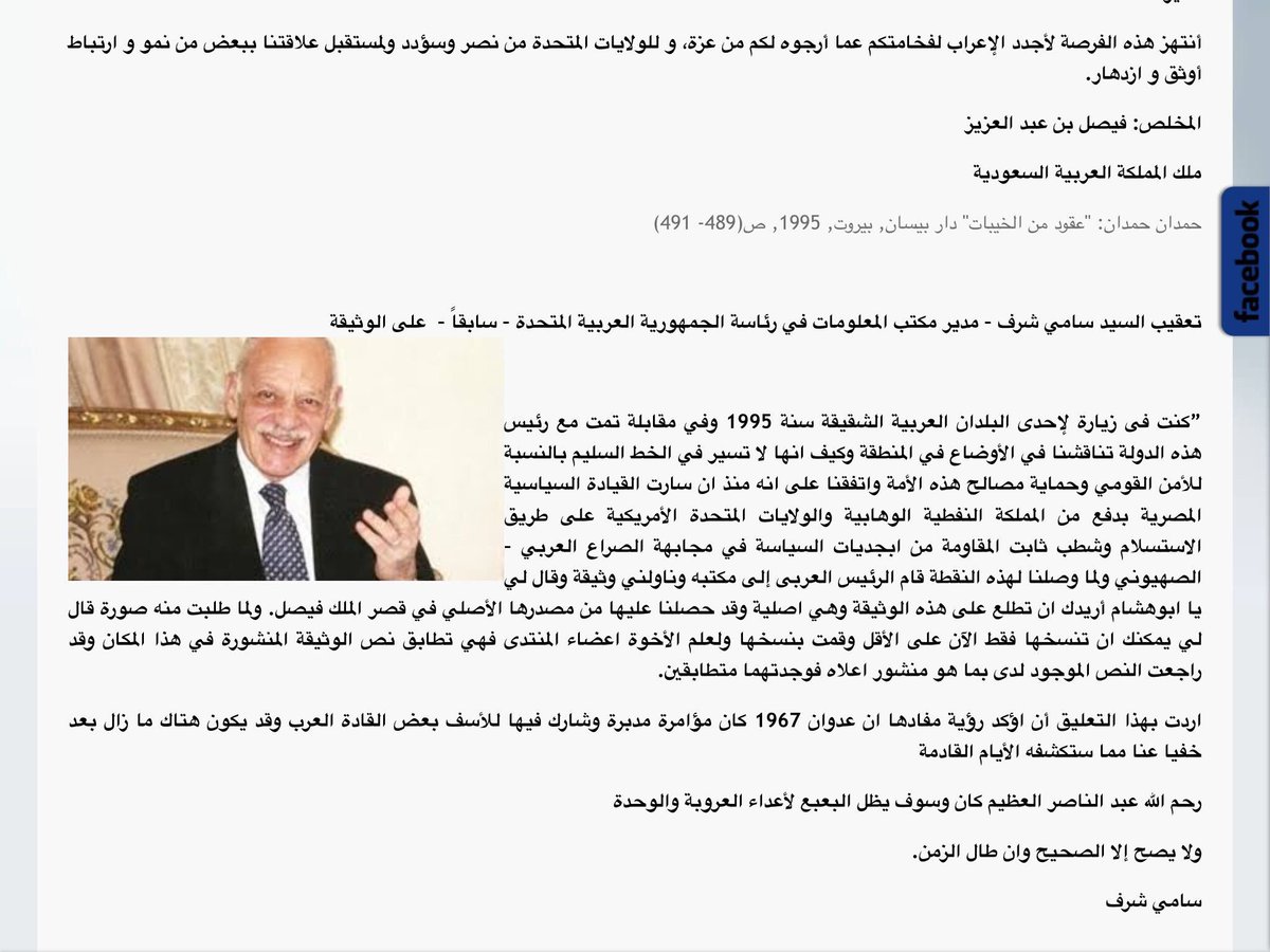 الرسالة المزورة المنسوبة للملك فيصل للرئيس الامريكي جونسون والذي يطلب فيها قصف مصر روجتها قناة #روسيا_اليوم بتاريخ 23-11-2016 قبل سنة والذي نقلها مقدم البرنامج من كتاب الفلسطيني حمدان حمدان الذي نقلها من الناصري سامي شرف نقلا عن حافظ الأسد الذي قال إنه وجدها في قصر الملك فيصل.