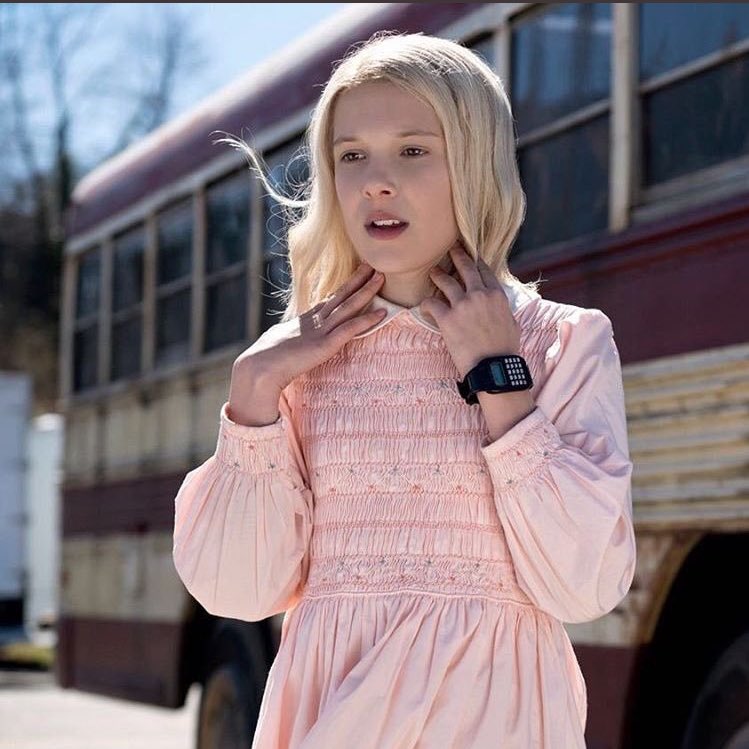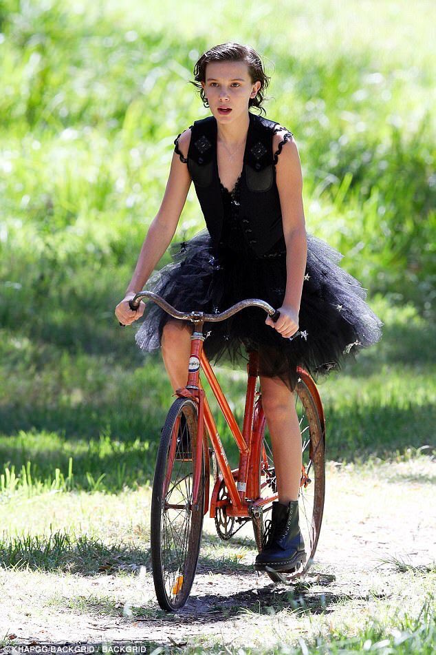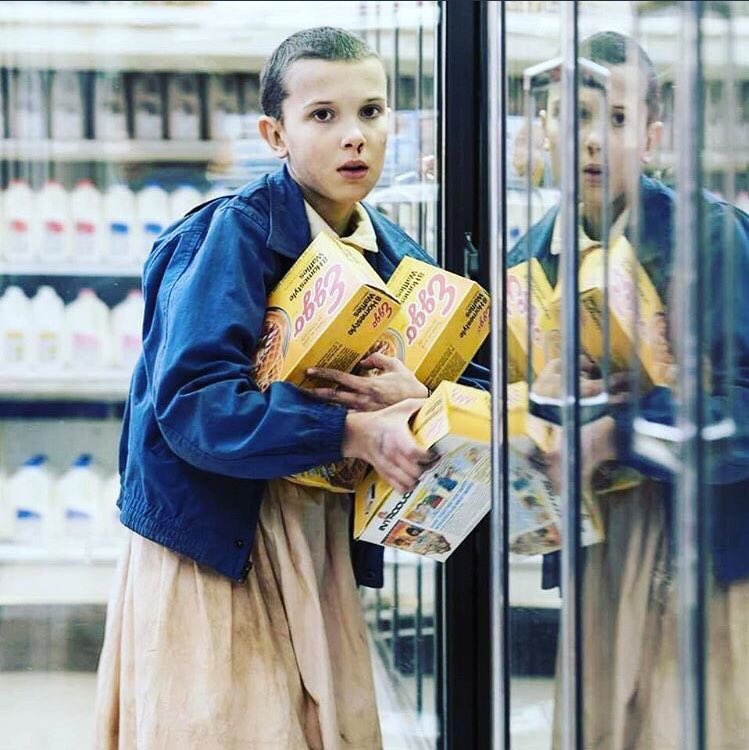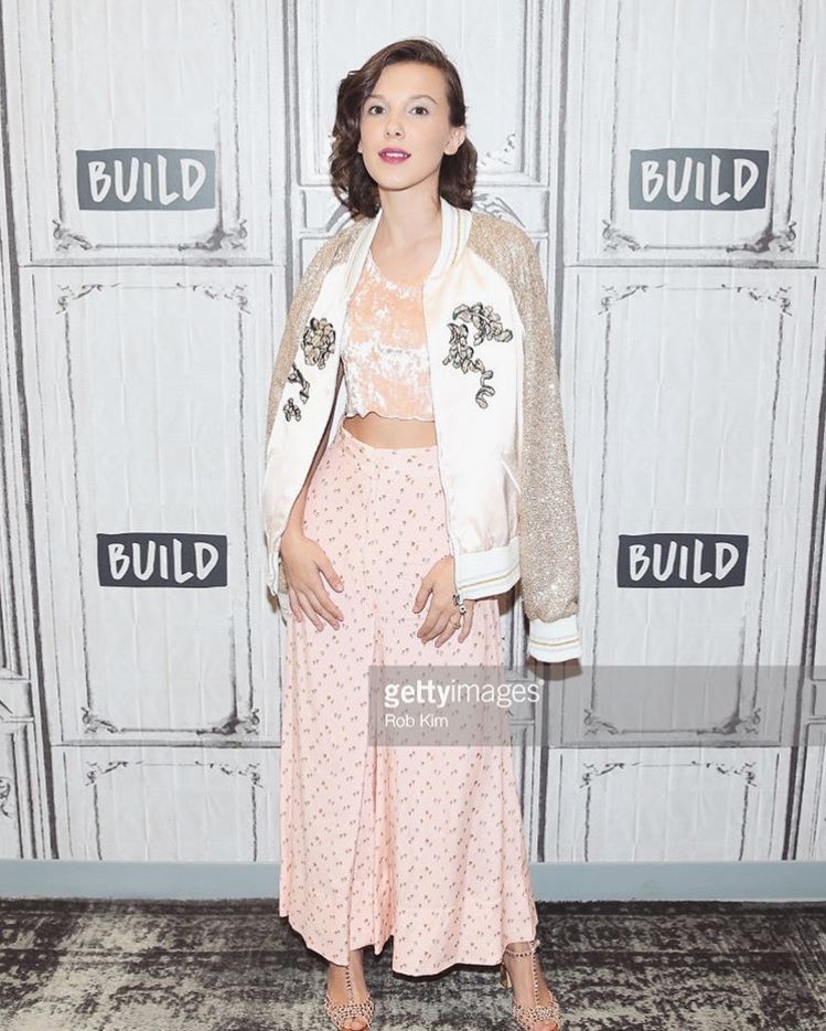 وهنا ، ميلي بوبي براون عندما كانت بحدث افتتاح الموسم الثاني المسلسل الناجح #StrangerThings .