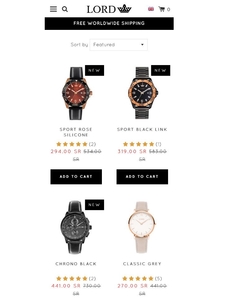 " موقع لورد للساعات يعلن عن تخفيضات تصفية على مجموعة من ساعاته... الموقع يقدم شحن مجاني للسعودية ويعرض أسعار الموقع بالريال والدفع باي بال 👍🏻