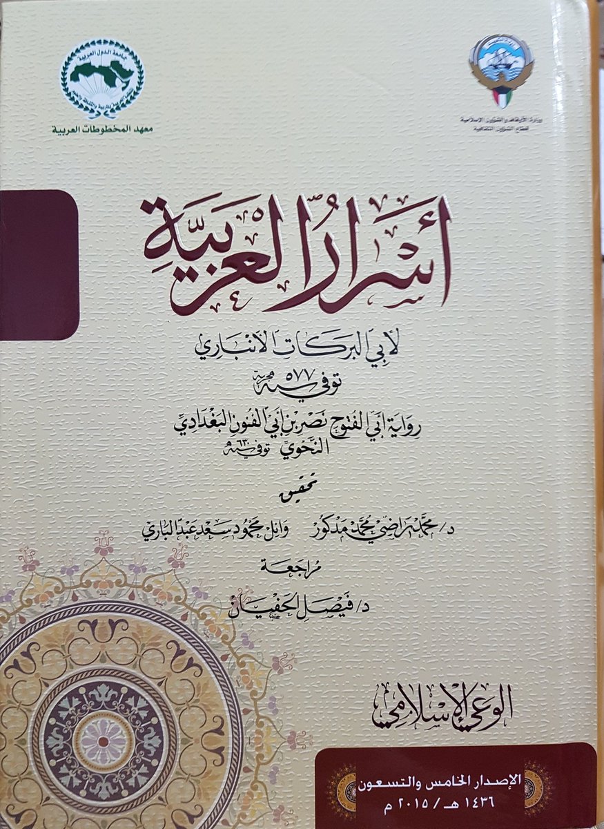 من الكتب النافعة الماتعة في عِلل النحو، كتاب أبي البركات الأنباري: (أسرار العربية)، وله طبعته المشهورة السائرة، المطبوعة في مجمع دمشق. لكن تفوقها طبعتان جيدتان، تجاوزتا الآفات التي فيها، وهاتان الطبعتان من #طبعات_مغفول_عنها !