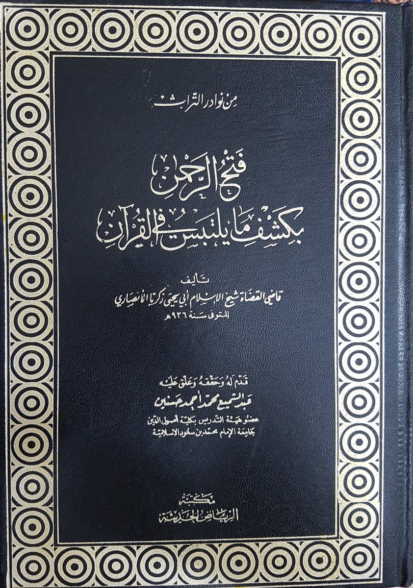 ومن كتب الباب الجامعة في موضوع المتشابه اللفظي في القرآن، كتاب القاضي أبي يحيى زكريا الأنصاري (فتح الرحمن بكشف ما يَلتبس في القرآن). له أكثر من طبعة في زمن متقارب، هذه الطبعة التي بعناية عبدالسميع حسنين جيدة، لكنها إحدى #طبعات_مغفول_عنها !