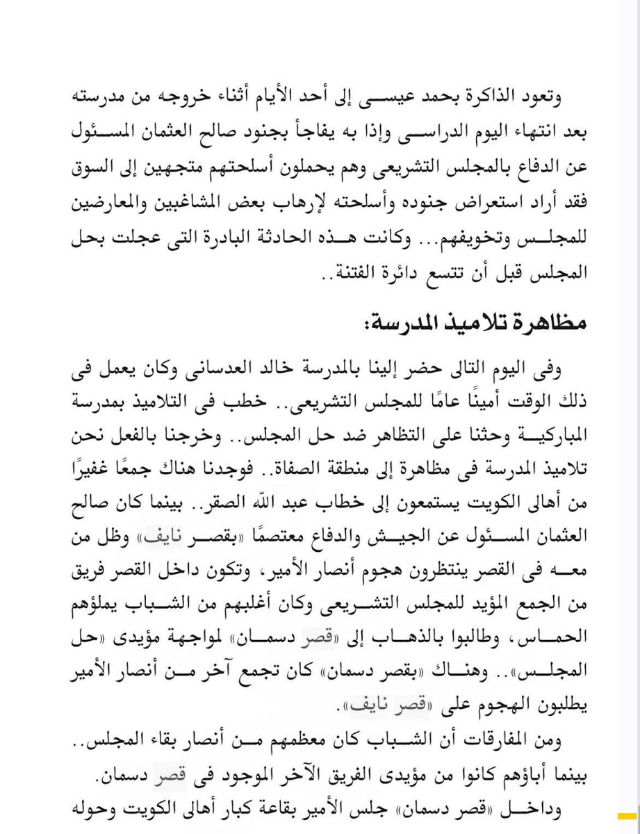 خطب فينا بالمدرسة خالد العدساني وحثنا على المظاهرات ضد حل المجلس وخرجنا لنشاهد جمع غفير من اهل الكويت يستمعون لخطاب عبدالله الصقر