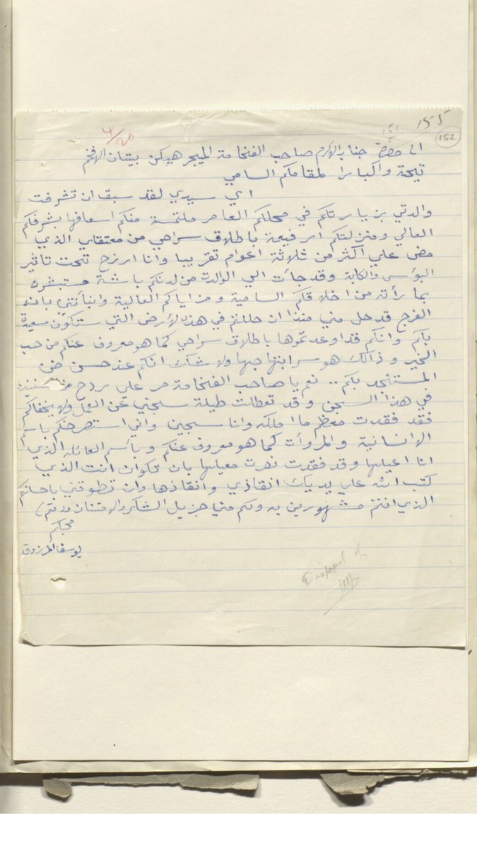 رد المندوب السياسي البريطاني على طلب استرحام المسجون يوسف المرزوق عضو المجلس التشريعي 1938