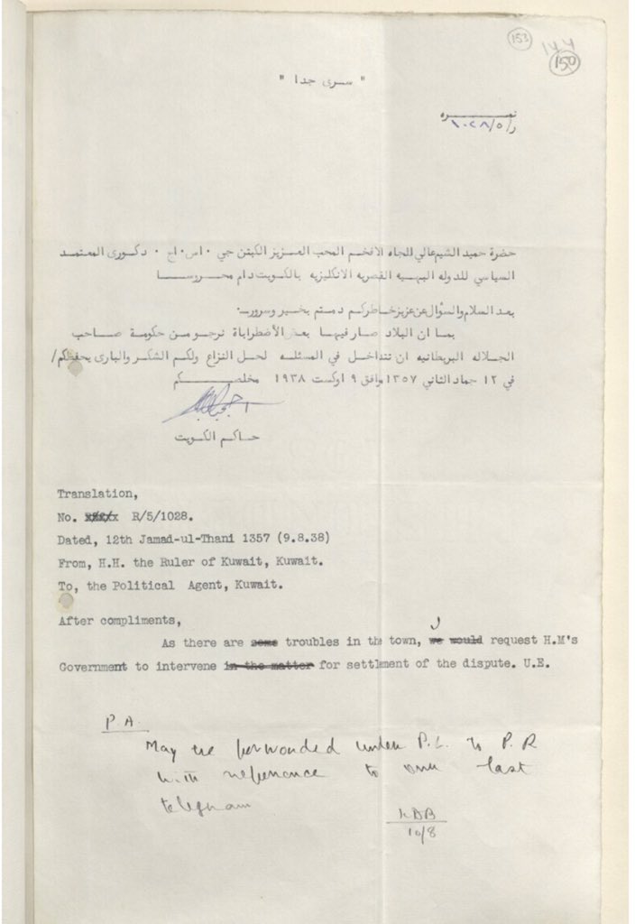 وثيقة سرية نادرة من الشيخ احمد الجابر