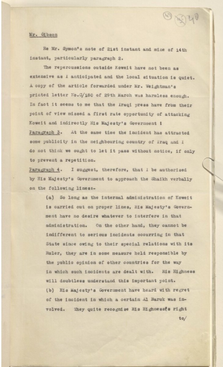 برقية بريطانية من المعتمد في الكويت :