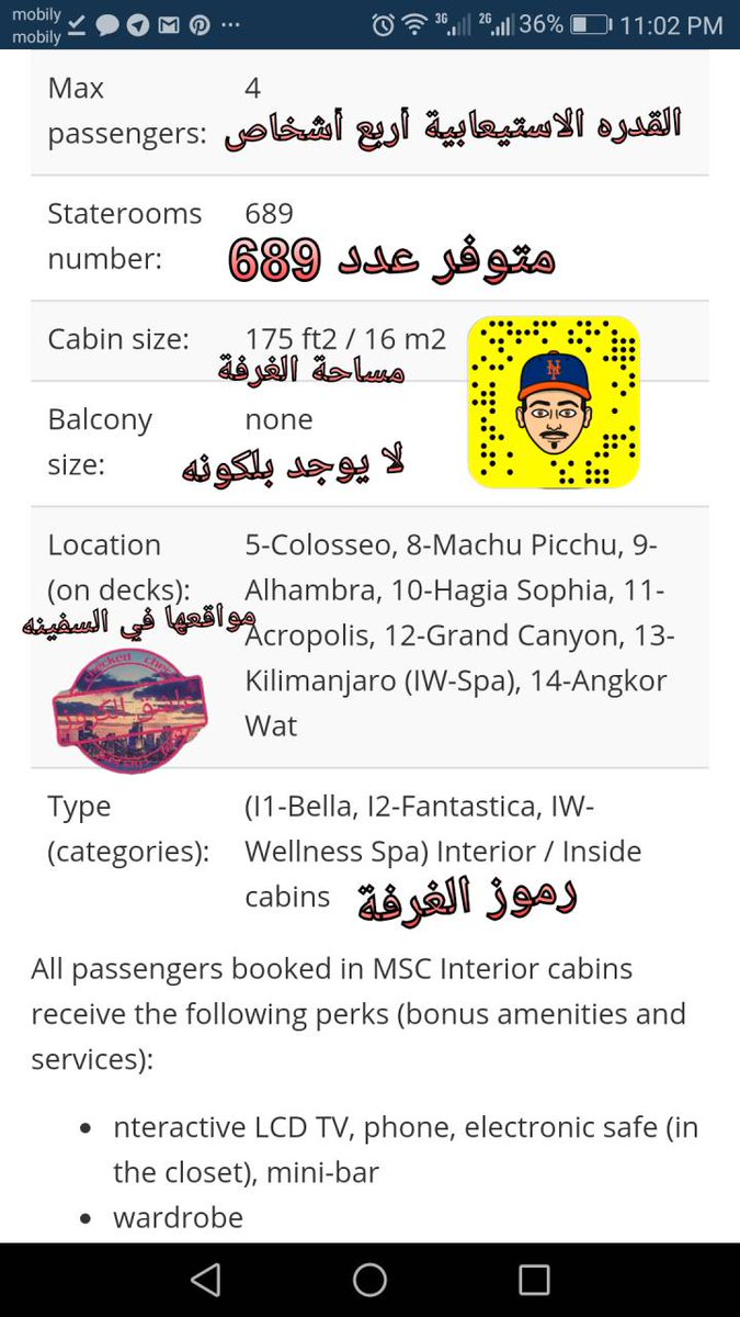 استمتع واستكشاف اقسام وأنواع الغرف وجميع مرافق السفينه الجديدة