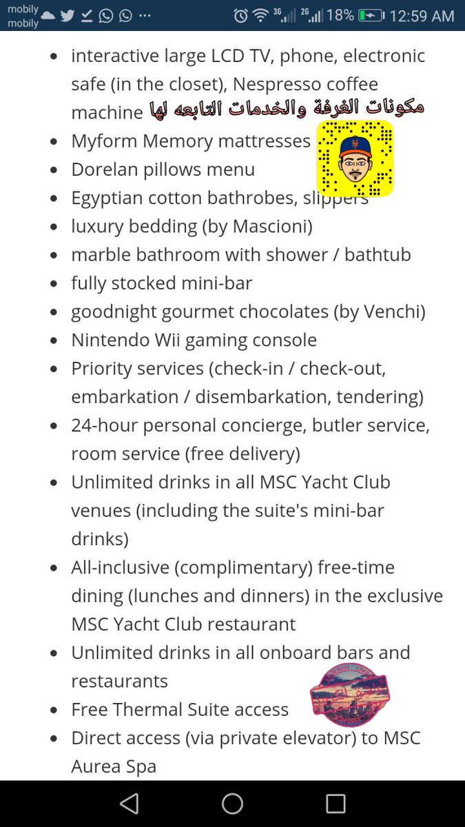 السفينة الجديدة #مارفيجليا التابعه لشركة #MSCCruises تجدون تحت هذا التغريده تغريدات متسلسلة بها بعض التفاصيل مثل( انواع الغرفه ، الأنشطة الموجوده على متن السفينه ، اقسام السفينه مسار الرحله والمدن التي تمر بها)