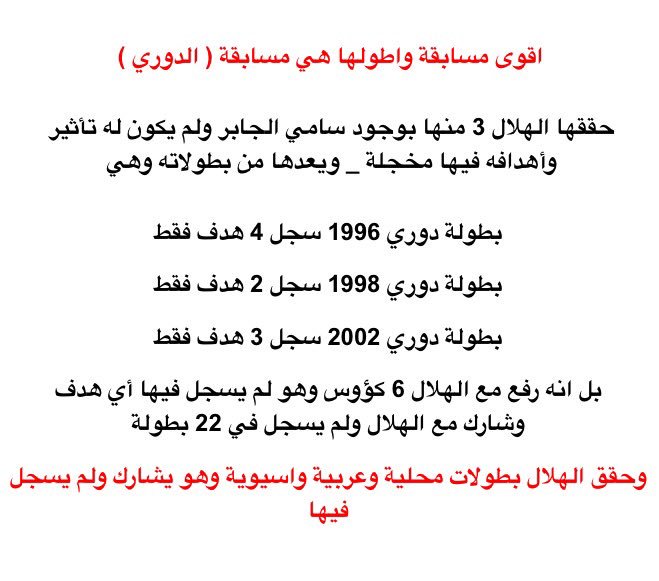 8️⃣ وجود #سامي_الجابر لم يضيف للهلال شي والذي قام به يقوم فيه اي لاعب ،، ووجودة لم يغني الهلال عن جلب مهاجمين مثل جاسم الهويدي وبشار عبدالله ونضاو والكاتو وسيرجيو وصلاح بصير وحسين العلي وياسر القحطاني ،، بل انه سامي كان يعامل معاملة خاصة بسبب قربة من الشيخ عبدالرحمن بن سعيد